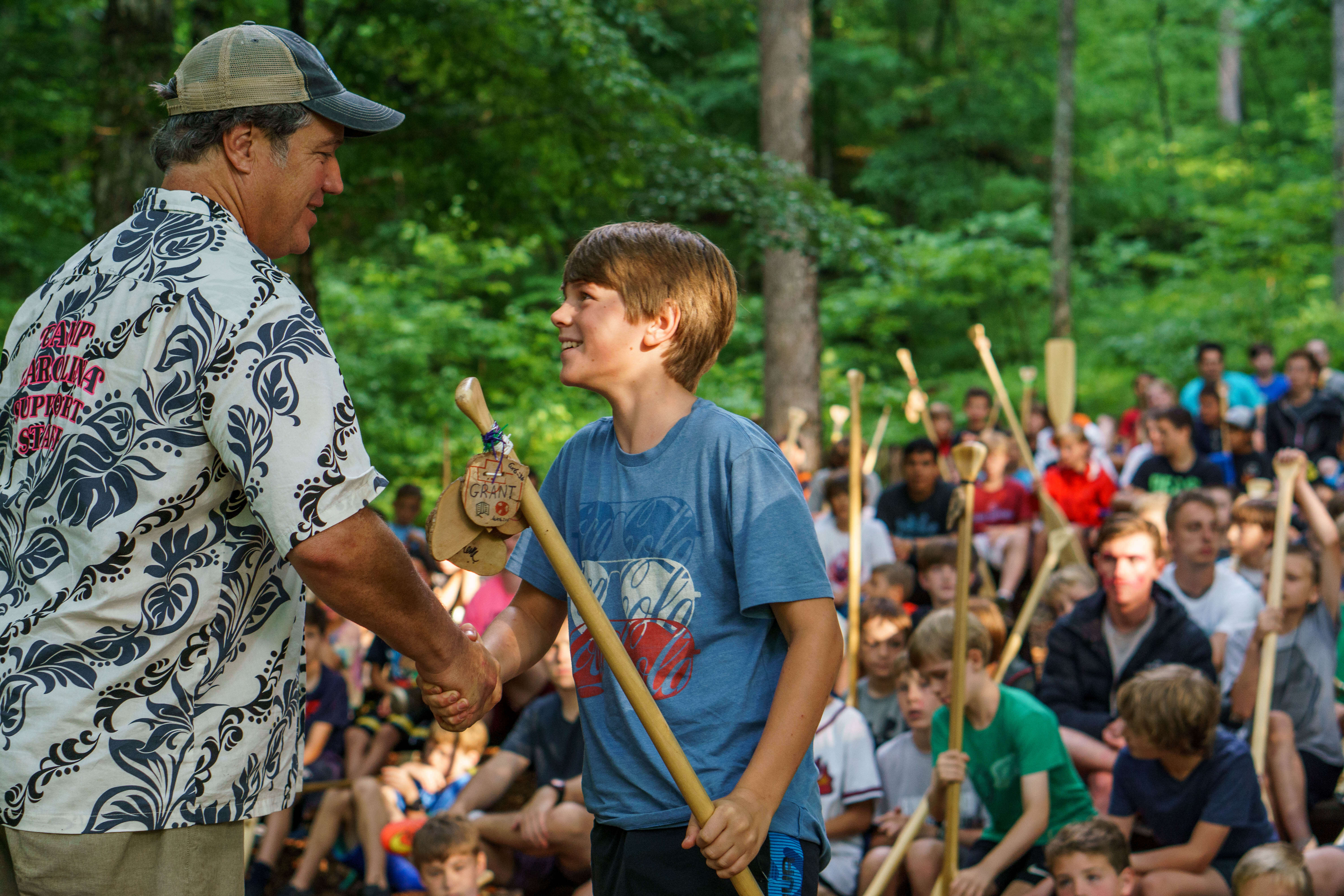 There are ten steps in the award with the first step being the Old Man of the Mountain paddle itself. After receiving their first step (the paddle) our campers can earn a brand on their paddle each summer thereafter. This award is given on Friday nights at Campfire -- where the whole camp gathers to publicly recognize and celebrate each camper’s achievement. At Camp Carolina, being a good citizen means that you treat others respectfully and considerately, practice taking initiative in keeping our shared spaces clean, and work on being an overall positive member of the community under the guidance of our counselors.