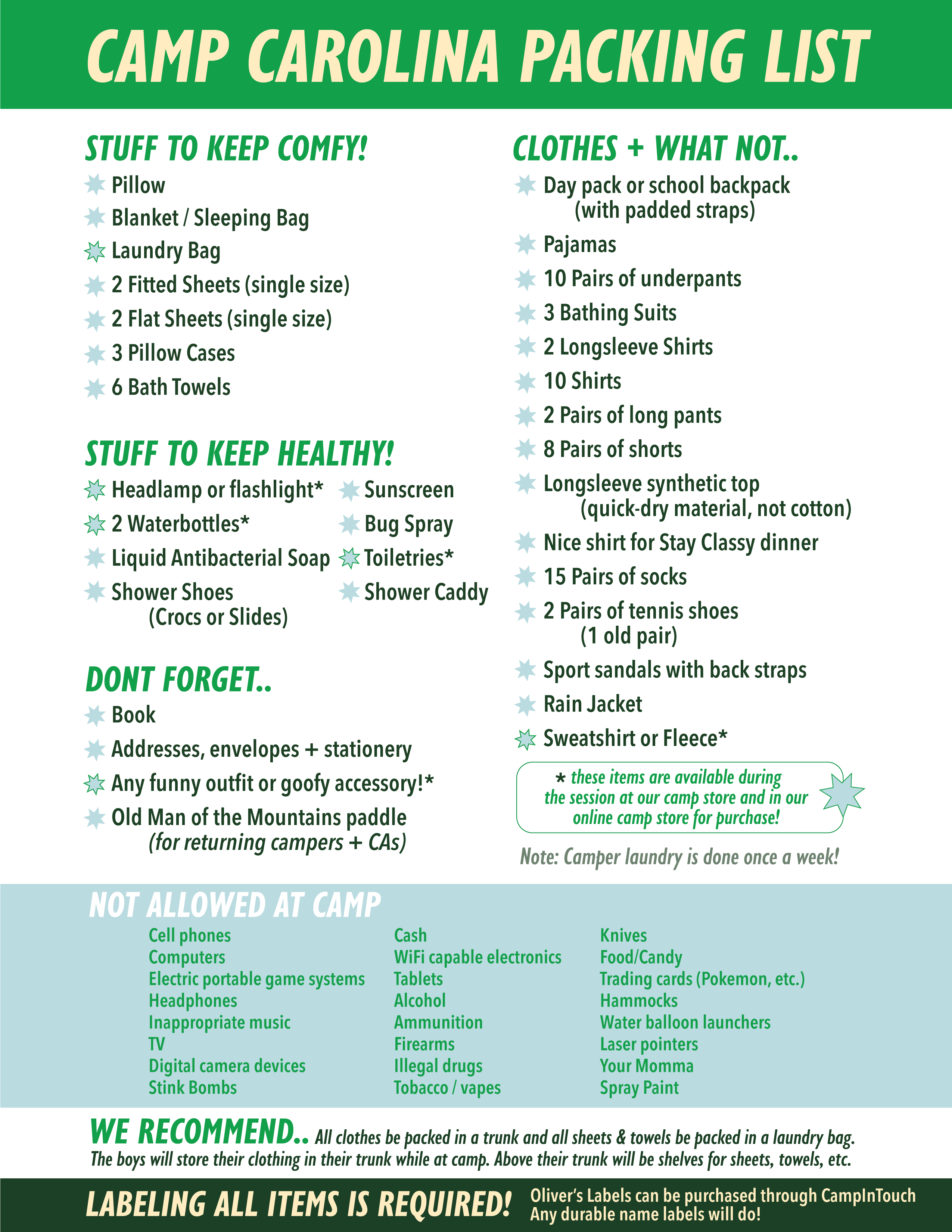 Additional questions? Please email info@campcarolina.com or call 828-884-2414.